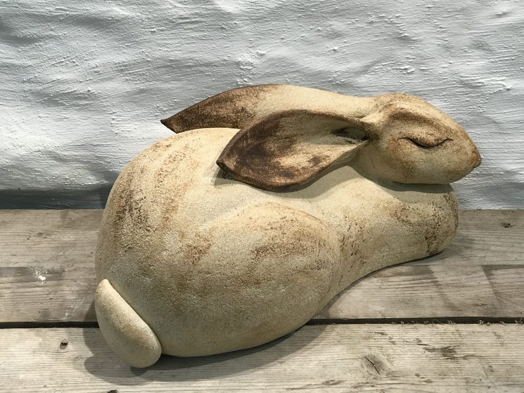 Sarah has worked from a small studio in Ross-on-Wye since 1982. Some years prior to that, she was fortunate to secure an apprenticeship with Adam Dvorski, a talented potter who worked from his pottery in Clyro, close to Hay-on-Wye. This gave Sarah the foundation to start throwing and creating her own domestic ware from a very small corrugated tin shed in her parent’s garden. Her passion is to create animals and birds that are native to the UK with elegant and simple form, suitable for indoor or outdoor display, such as foxes, hares and badgers.