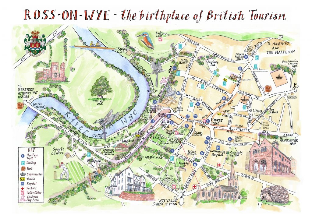 Ross-on-Wye Tourism Association‘s website has more information on visitrossonwye.com – tourism leaflets are also available at Made in Ross (upstairs at the Market House) and Truffles Delicatessen on the High Street.