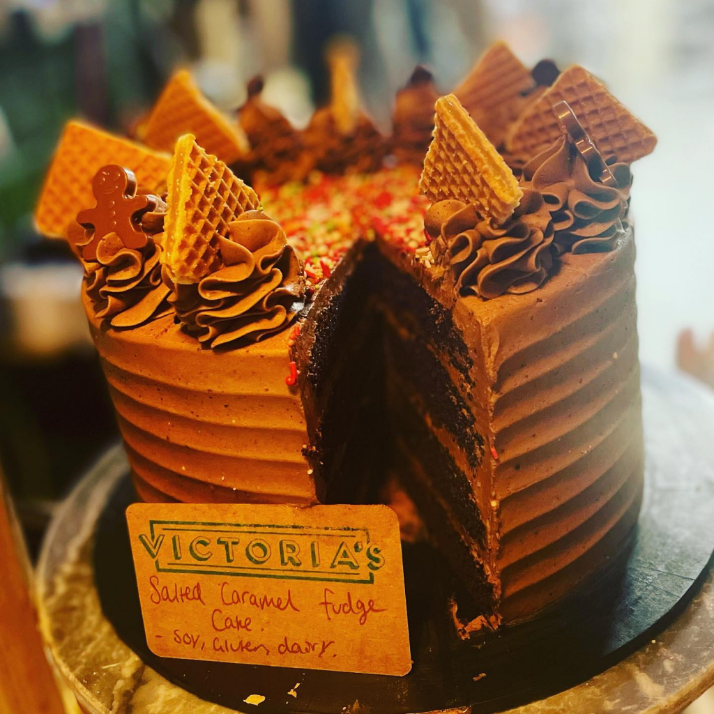 The beautifully designed cozy interior is an eclectic mix of retro and art deco furniture and fittings, with a pair of luxurious red velvet drapes framing the front window. Victoria offers a wonderful range of cakes, bakes and savoury snacks including a brunch which is available from 10am to 4pm.