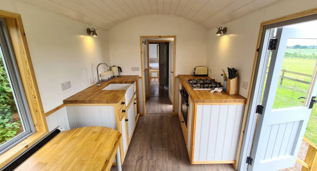 Stay in one of these two unique glamping options, Shepherd’s View or Bertha’s Box, each sleeping 4 people. Private kitchen and bathroom facilities.